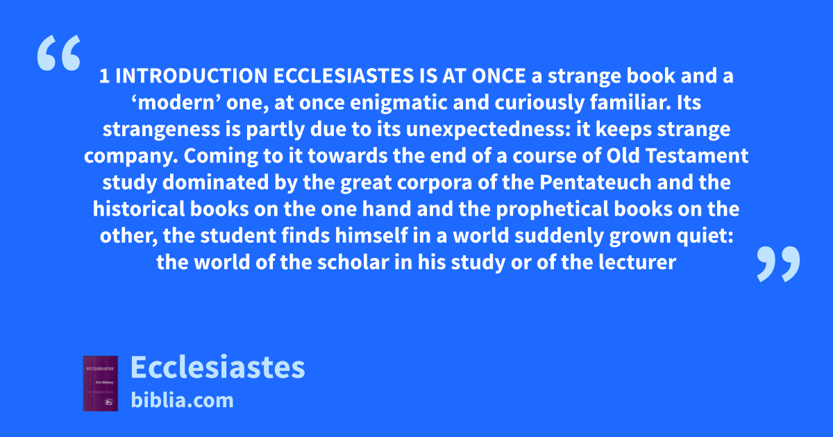 Dr. Whybray describes the ancient Near-Eastern tradition of producing collections of wisdom: instructions in the form of aphorisms and proverbs for educating the young on how to have a happy and successful life. Although Proverbs depends on the tradition of wisdom literature, according to Whybray, the book of Ecclesiastes modifies this tradition. The book contains three very different types of...