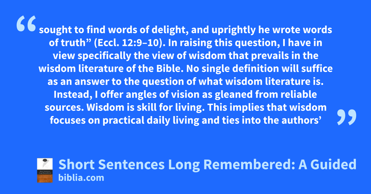 This is the last of a six-volume series called Reading the Bible as Literature. In this series, the author not only explores the intersection of the Bible and literature, but he also shows pastors, students, and teachers of the Bible the beautiful craftsmanship of Proverbs and wisdom literature and how to interpret them correctly. Dr. Ryken goes one step further than merely explaining the genre...