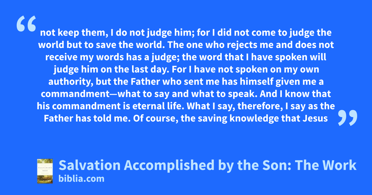 not keep them, I do not judge him; for I did not come to judge the world but to save the world. The one who rejects me and does not receive my words has a judge; the word that I have spoken will judge him on the last day. For I have not spoken on my own authority, but the Father who sent me has himself given me a commandment—what to say and what to speak. And I know that his commandment is eternal life. What I say, therefore, I say as the Father has told me. Of course, the saving knowledge that Jesus