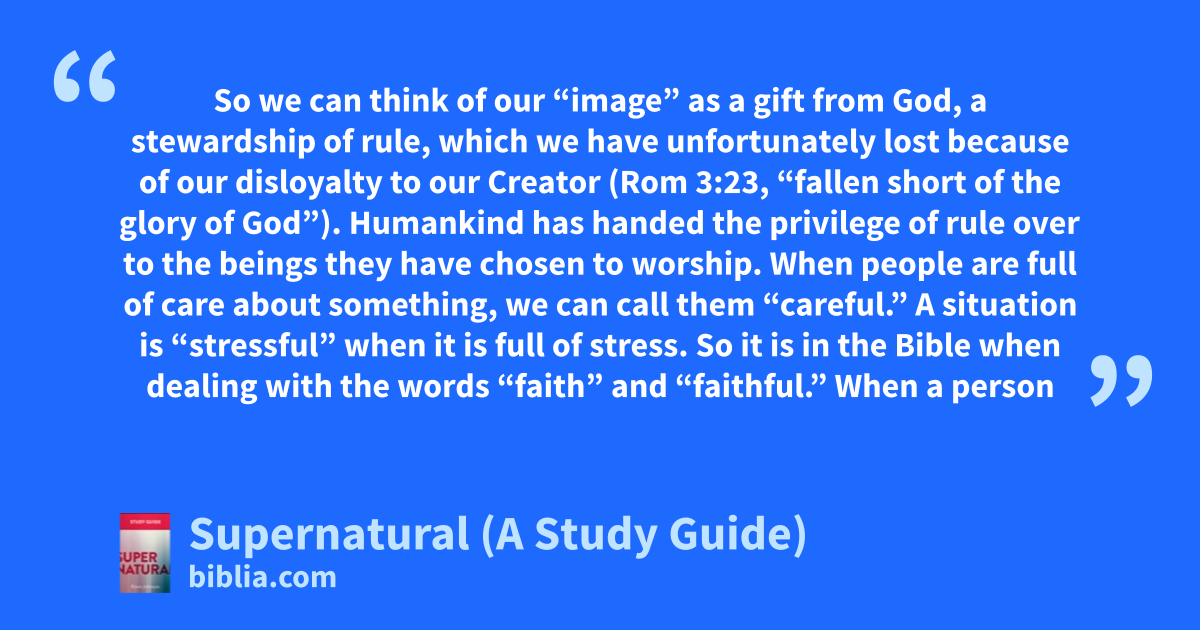 So we can think of our “image” as a gift from God, a stewardship of rule, which we have unfortunately lost because of our disloyalty to our Creator (Rom 3:23, “fallen short of the glory of God”). Humankind has handed the privilege of rule over to the beings they have chosen to worship. When people are full of care about something, we can call them “careful.” A situation is “stressful” when it is full of stress. So it is in the Bible when dealing with the words “faith” and “faithful.” When a person