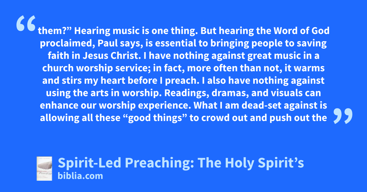 In the words of author Greg Heisler, “Spirit-led preaching is a call issued to preachers, pastors, and teachers of homiletics to recover the Holy Spirit for expository preaching in the same way we have recovered the biblical text. . . . My plan for doing this is to recover the doctrine of pneumatology (the study of spiritual beings/phenomena) for our theology of preaching, resulting in a renewed...