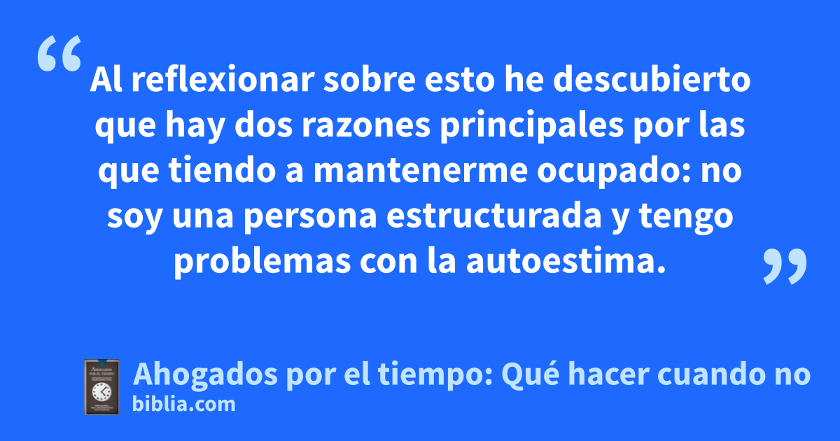 Al reflexionar sobre esto he descubierto que hay dos razones principales por las que tiendo a mantenerme ocupado: no soy una persona estructurada y tengo problemas con la autoestima.