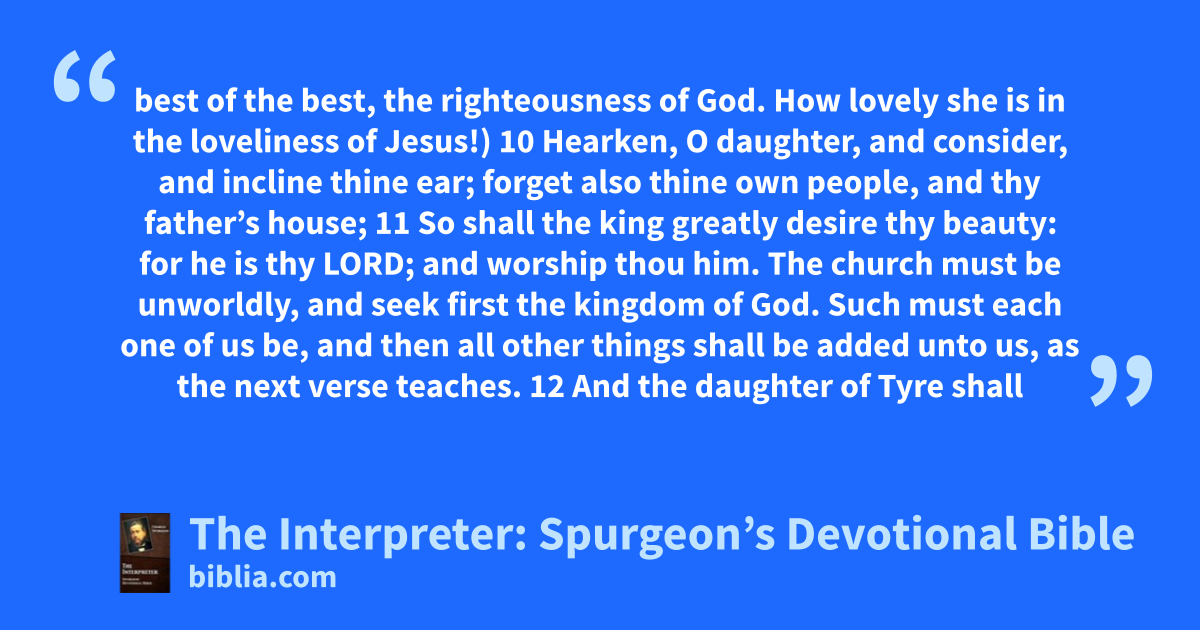 The Interpreter: Spurgeon’s Devotional Bible contains the text of the entire Bible, along with Spurgeon’s reflections on nearly every verse. This Bible, arranged topically instead of canonically, allows readers to experience the text of Scripture along with Charles Spurgeon himself. His commentary illuminates the texts, and provides notes on interpretation and application of the Bible.
