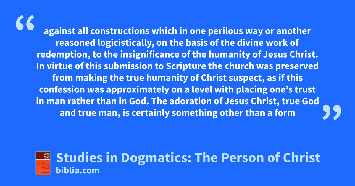 In the doctrine of the person of Christ—more than anywhere else, says Professor Berkouwer—do we feel that theology is not practiced in a corner, and Christ can not be made the object of a neutral interest in a scientific analysis. There will always be implicitly audible the pre-commitment of faith or unfaith, even when the theological discussion does not change to preaching.
