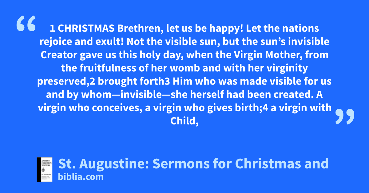 1 CHRISTMAS Brethren, let us be happy! Let the nations rejoice and exult! Not the visible sun, but the sun’s invisible Creator gave us this holy day, when the Virgin Mother, from the fruitfulness of her womb and with her virginity preserved,2 brought forth3 Him who was made visible for us and by whom—invisible—she herself had been created. A virgin who conceives, a virgin who gives birth;4 a virgin with Child,