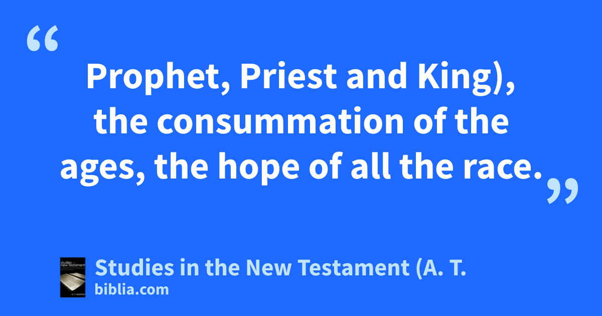 Prophet, Priest and King), the consummation of the ages, the hope of all the race.