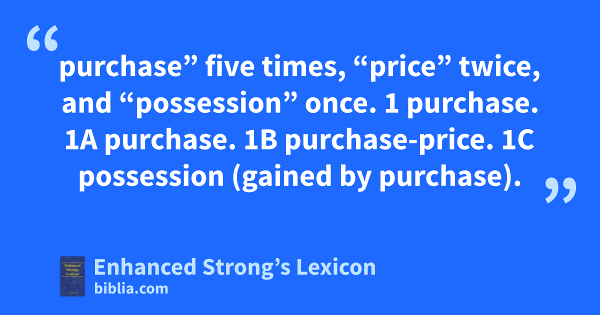 purchase” five times, “price” twice, and “possession” once. 1 purchase. 1A purchase. 1B purchase-price. 1C possession (gained by purchase).
