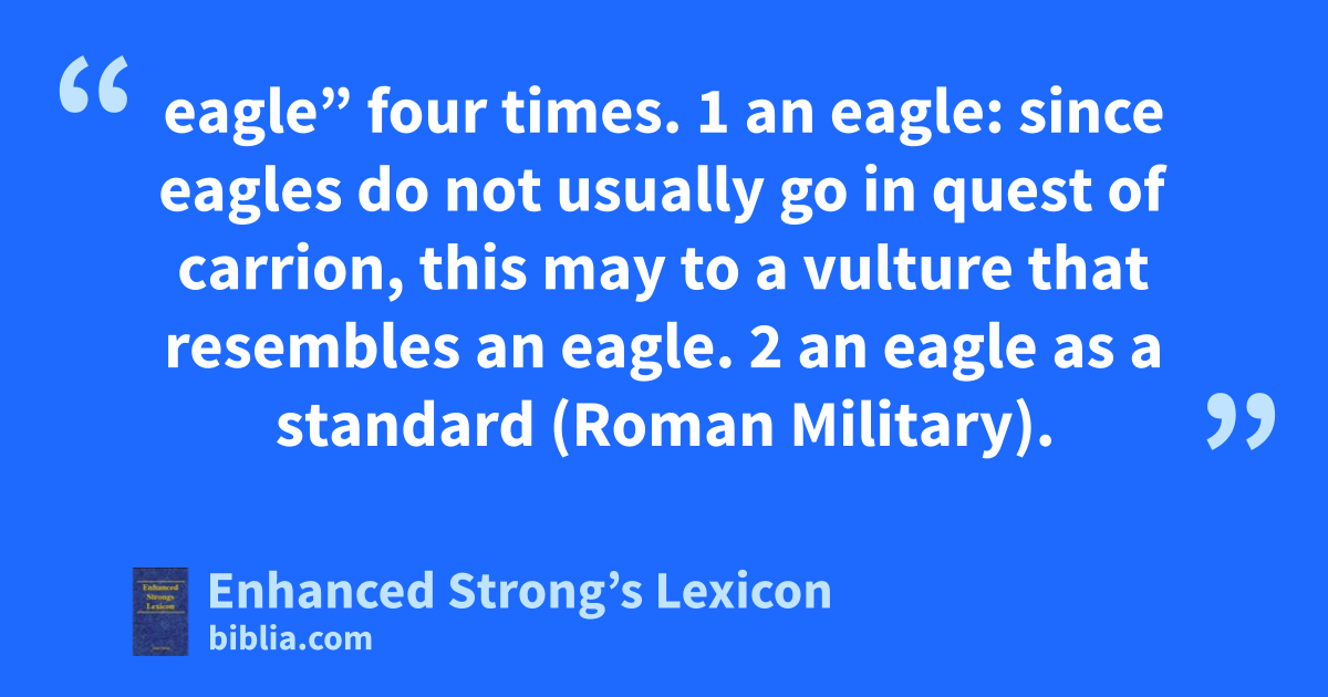 eagle” four times. 1 an eagle: since eagles do not usually go in quest of carrion, this may to a vulture that resembles an eagle. 2 an eagle as a standard (Roman Military).