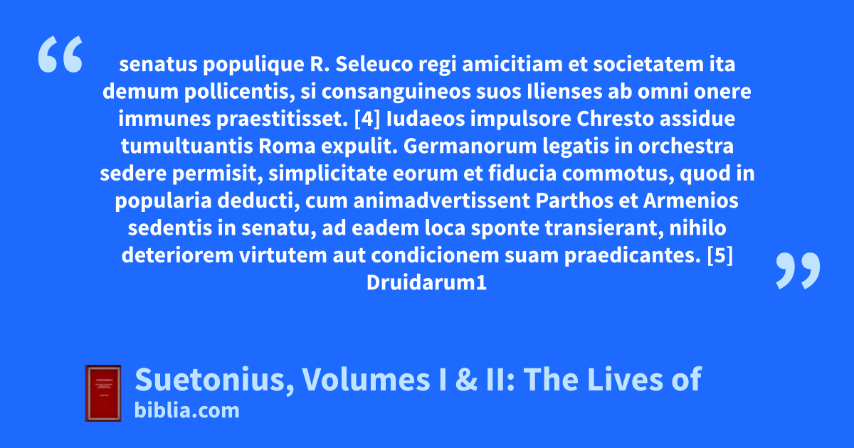 This volume contains the Latin text of Suetonius’ The Lives of the Caesars and The Lives of Illustrious Men.