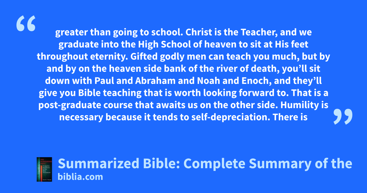 Sixth: Humility—reverent humility. “If any man think that he knoweth anything, he knoweth nothing as he ought to know.” This is only another name for docility. This is the characteristic of an ideal disciple. Disciple is the word those who followed Jesus first received. Disciple means learner. They entered the school of faith and of life. The Latin word from which humility comes means near the ground. An old writer said, “There are two safe places in the universe, the heavens and the dust. Of these two, the dust is the safer place, for there have been those who fell out of heaven, but who ever heard of any one falling out of the dust? Where could he fall?” Be clothed with humility, a new style of dress goods, prices not gone up on account of the war. “God resisteth the proud and giveth grace unto the humble.” But alas! when the consciousness of humility goes into the heart, the grace of humility goes out. Life is for learning, and there is no privilege greater than going to school. Christ is the Teacher, and we graduate into the High School of heaven to sit at His feet throughout eternity. Gifted godly men can teach you much, but by and by on the heaven side bank of the river of death, you’ll sit down with Paul and Abraham and Noah and Enoch, and they’ll give you Bible teaching that is worth looking forward to. That is a post-graduate course that awaits us on the other side. Humility is necessary because it tends to self-depreciation. There is no dogmatism or bigotry so hard and bitter as that of ignorance. Lord Bason said, “A little learning tendeth to self-conceit, but much learning tendeth to humility.” The men who know most think they know the least, and the men who know the least think they know it all.