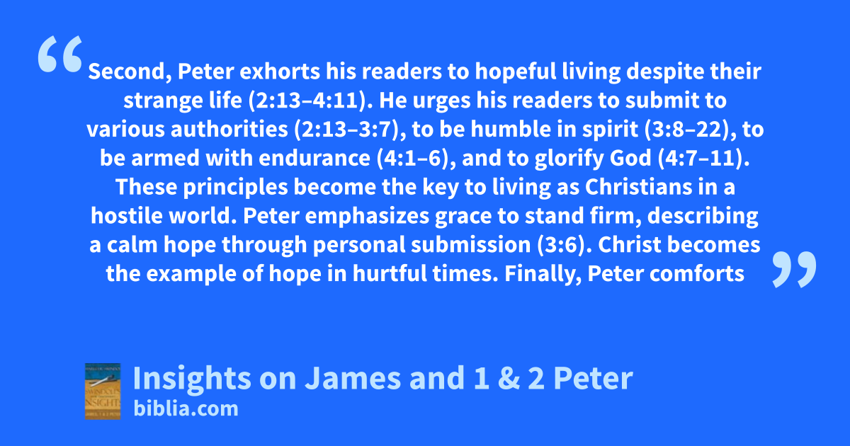 Master teacher Chuck Swindoll provides a fantastic commentary on three New Testament epistles. Insights on James, 1 & 2 Peter, the newest addition to this landmark series, provides a wealth of colorful, detailed, and easy-to-understand insights into the letters of James and 1 & 2 Peter.