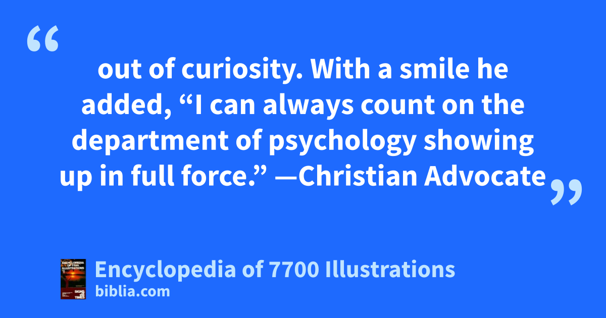 out of curiosity. With a smile he added, “I can always count on the department of psychology showing up in full force.” —Christian Advocate