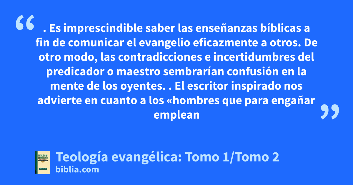 . Es imprescindible saber las enseñanzas bíblicas a fin de comunicar el evangelio eficazmente a otros. De otro modo, las contradicciones e incertidumbres del predicador o maestro sembrarían confusión en la mente de los oyentes. . El escritor inspirado nos advierte en cuanto a los «hombres que para engañar emplean