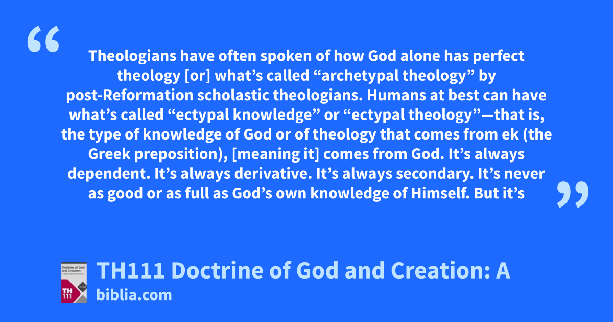 Theologians have often spoken of how God alone has perfect theology [or] what’s called “archetypal theology” by post-Reformation scholastic theologians. Humans at best can have what’s called “ectypal knowledge” or “ectypal theology”—that is, the type of knowledge of God or of theology that comes from ek (the Greek preposition), [meaning it] comes from God. It’s always dependent. It’s always derivative. It’s always secondary. It’s never as good or as full as God’s own knowledge of Himself. But it’s