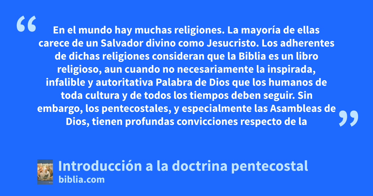 En el mundo hay muchas religiones. La mayoría de ellas carece de un Salvador divino como Jesucristo. Los adherentes de dichas religiones consideran que la Biblia es un libro religioso, aun cuando no necesariamente la inspirada, infalible y autoritativa Palabra de Dios que los humanos de toda cultura y de todos los tiempos deben seguir. Sin embargo, los pentecostales, y especialmente las Asambleas de Dios, tienen profundas convicciones respecto de la