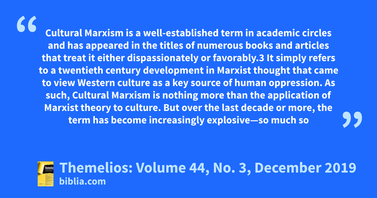 Cultural Marxism is a well-established term in academic circles and has appeared in the titles of numerous books and articles that treat it either dispassionately or favorably.3 It simply refers to a twentieth century development in Marxist thought that came to view Western culture as a key source of human oppression. As such, Cultural Marxism is nothing more than the application of Marxist theory to culture. But over the last decade or more, the term has become increasingly explosive—so much so