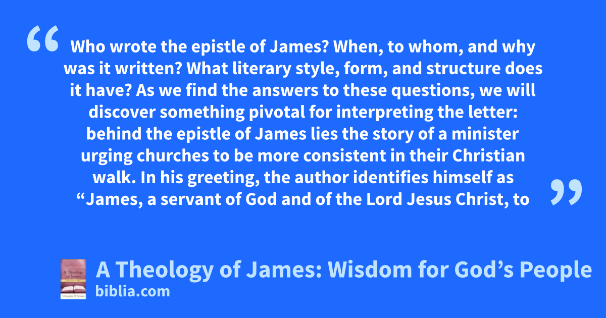 Who wrote the epistle of James? When, to whom, and why was it written? What literary style, form, and structure does it have? As we find the answers to these questions, we will discover something pivotal for interpreting the letter: behind the epistle of James lies the story of a minister urging churches to be more consistent in their Christian walk. In his greeting, the author identifies himself as “James, a servant of God and of the Lord Jesus Christ, to