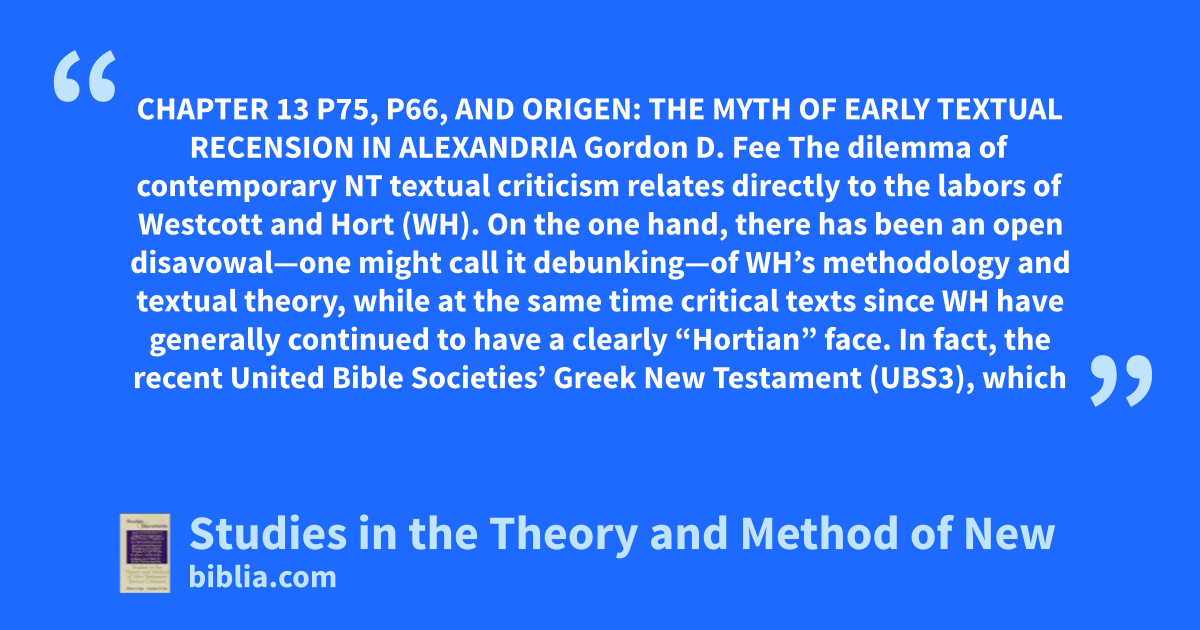 The seventeen studies in this volume provide a comprehensive presentation and assessment of past and current methods applied to the New Testament text. Both acknowledged specialists in historical and methodological studies of textual criticism, coauthors Epp and Fee offer an introductory survey of the whole field of New Testament textual criticism, followed by sections of essays on the following...