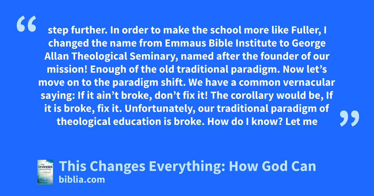 How does God change your life? It begins in your mind. If you are unable to change your thoughts and see the world from a different viewpoint, there can be no transformation “by the renewing of your mind” (Rom. 12:2). While thinking differently is difficult, the Bible makes it clear that it is a necessary part of spiritual growth. In This Changes Everything, renowned missiologist C. Peter Wagner...