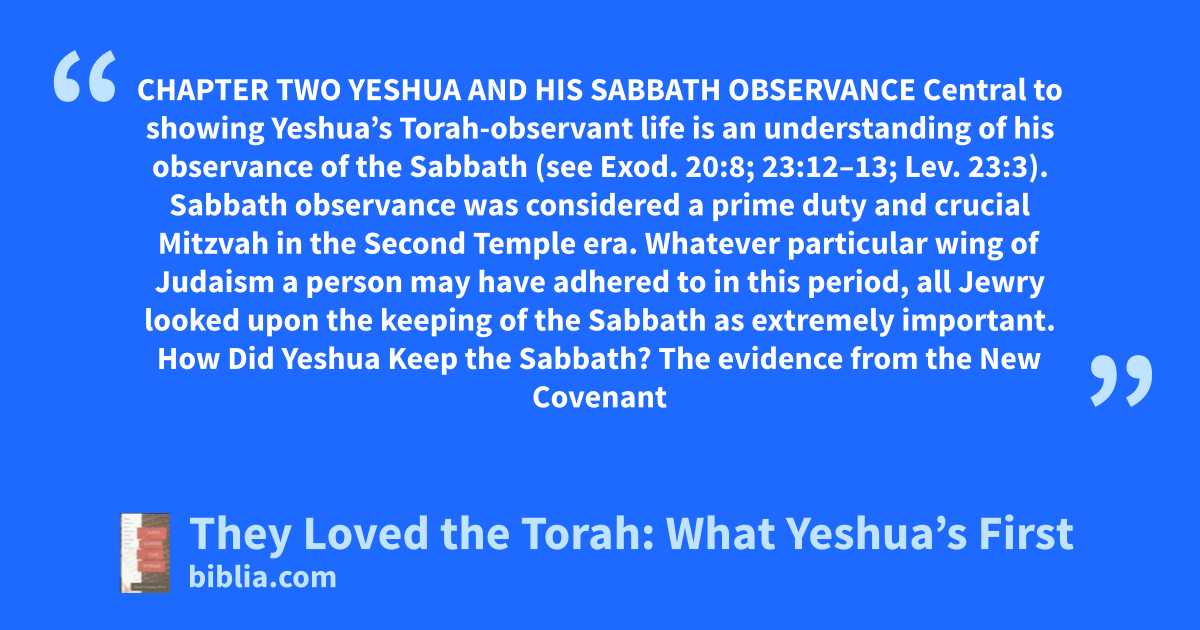 CHAPTER TWO YESHUA AND HIS SABBATH OBSERVANCE Central to showing Yeshua’s Torah-observant life is an understanding of his observance of the Sabbath (see Exod. 20:8; 23:12–13; Lev. 23:3). Sabbath observance was considered a prime duty and crucial Mitzvah in the Second Temple era. Whatever particular wing of Judaism a person may have adhered to in this period, all Jewry looked upon the keeping of the Sabbath as extremely important. How Did Yeshua Keep the Sabbath? The evidence from the New Covenant