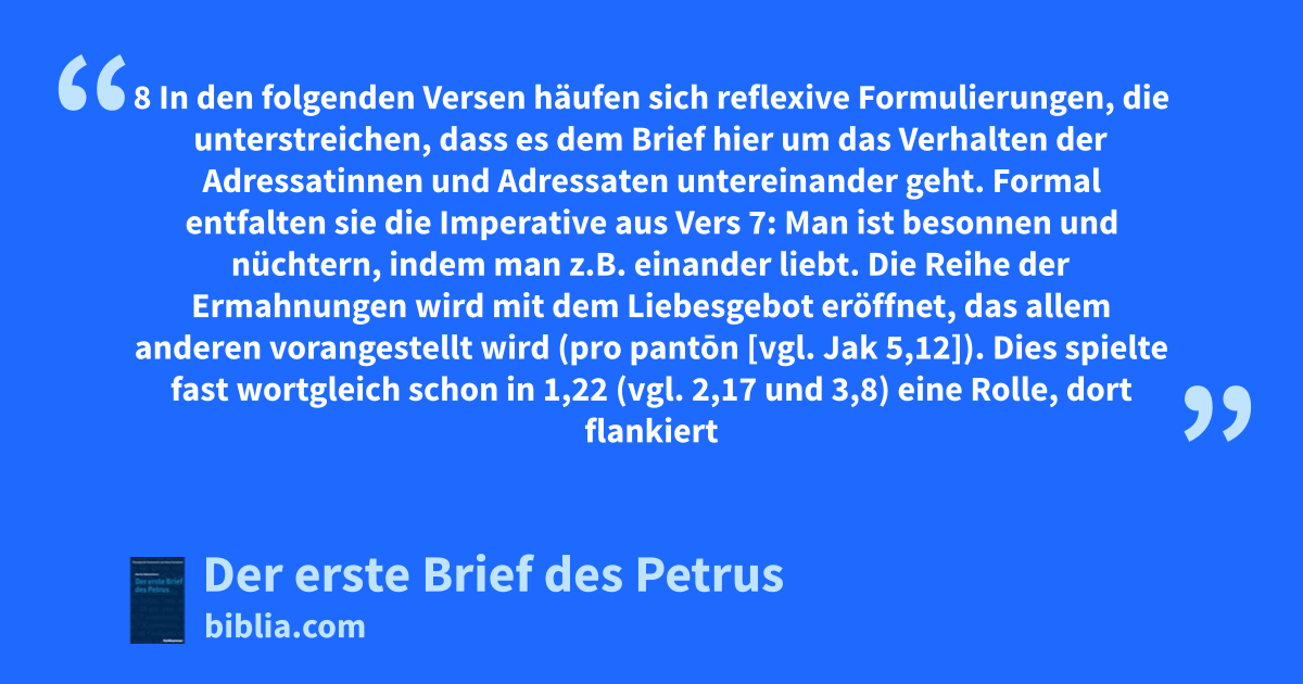 Der erste Petrusbrief richtet sich an Gemeinden, die in ihrem Herkunftsumfeld Diskriminierungserfahrungen machen, nachdem sie sich zum durch Jesus vermittelten Glauben an den einen Gott hingewandt hatten. Der Brief stellt diese Erfahrungen in neue Deutungshorizonte, indem er sie z. B. als notwendige Konsequenz der Zugehörigkeit zu Gott oder als Aktualisierung der Nachfolge des Gesalbten...