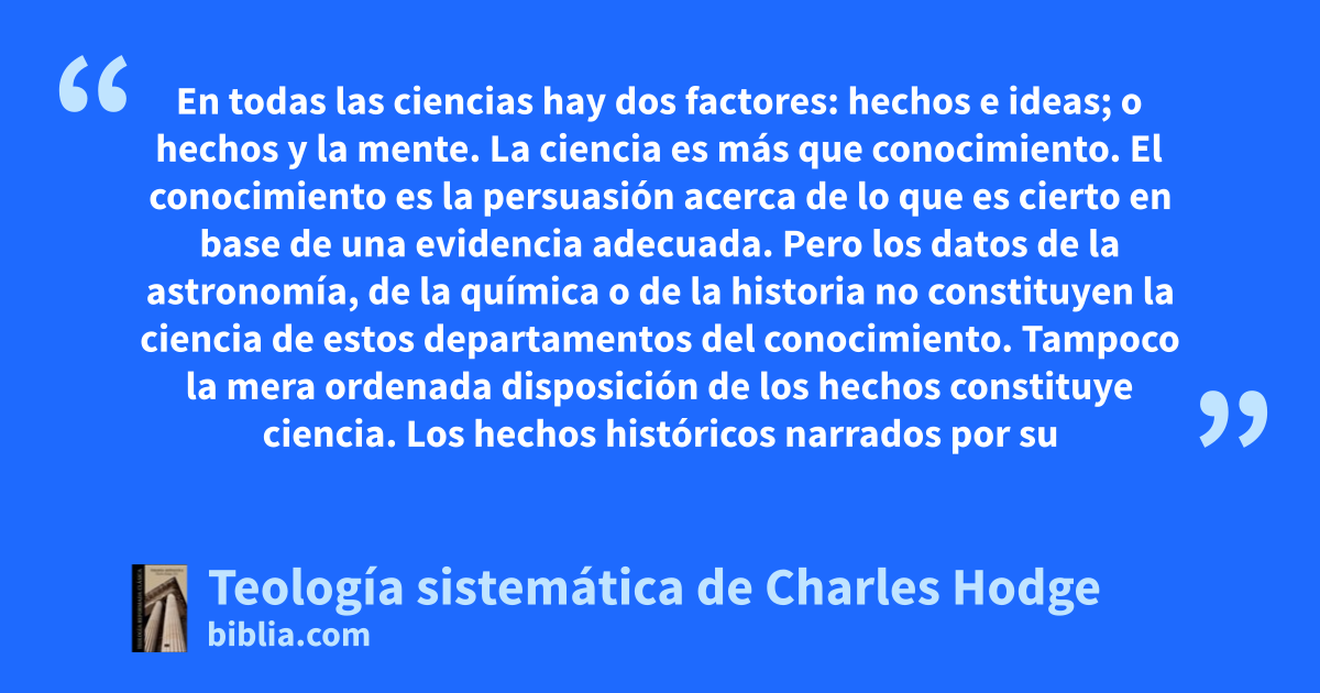 En todas las ciencias hay dos factores: hechos e ideas; o hechos y la mente. La ciencia es más que conocimiento. El conocimiento es la persuasión acerca de lo que es cierto en base de una evidencia adecuada. Pero los datos de la astronomía, de la química o de la historia no constituyen la ciencia de estos departamentos del conocimiento. Tampoco la mera ordenada disposición de los hechos constituye ciencia. Los hechos históricos narrados por su