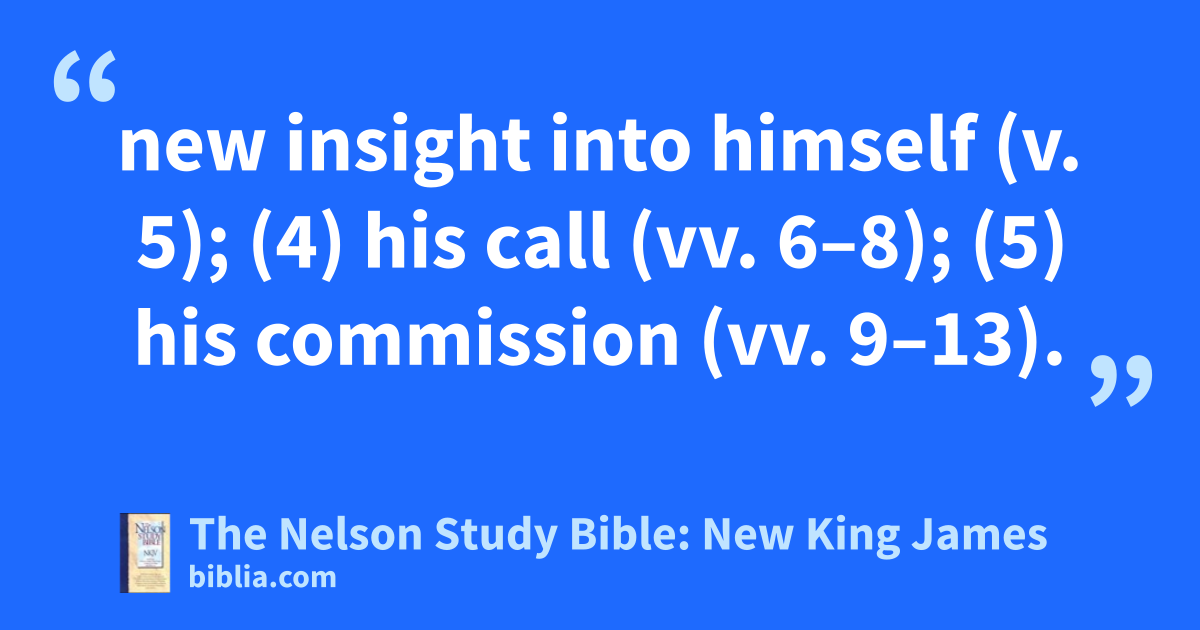 new insight into himself (v. 5); (4) his call (vv. 6–8); (5) his commission (vv. 9–13).