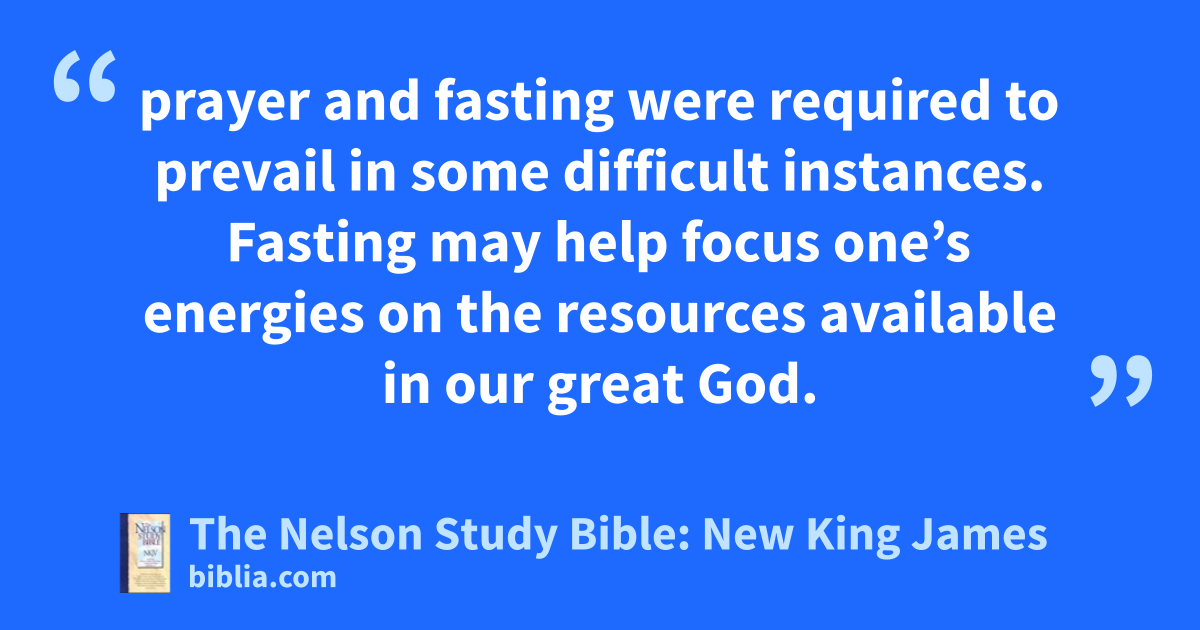 prayer and fasting were required to prevail in some difficult instances. Fasting may help focus one’s energies on the resources available in our great God.
