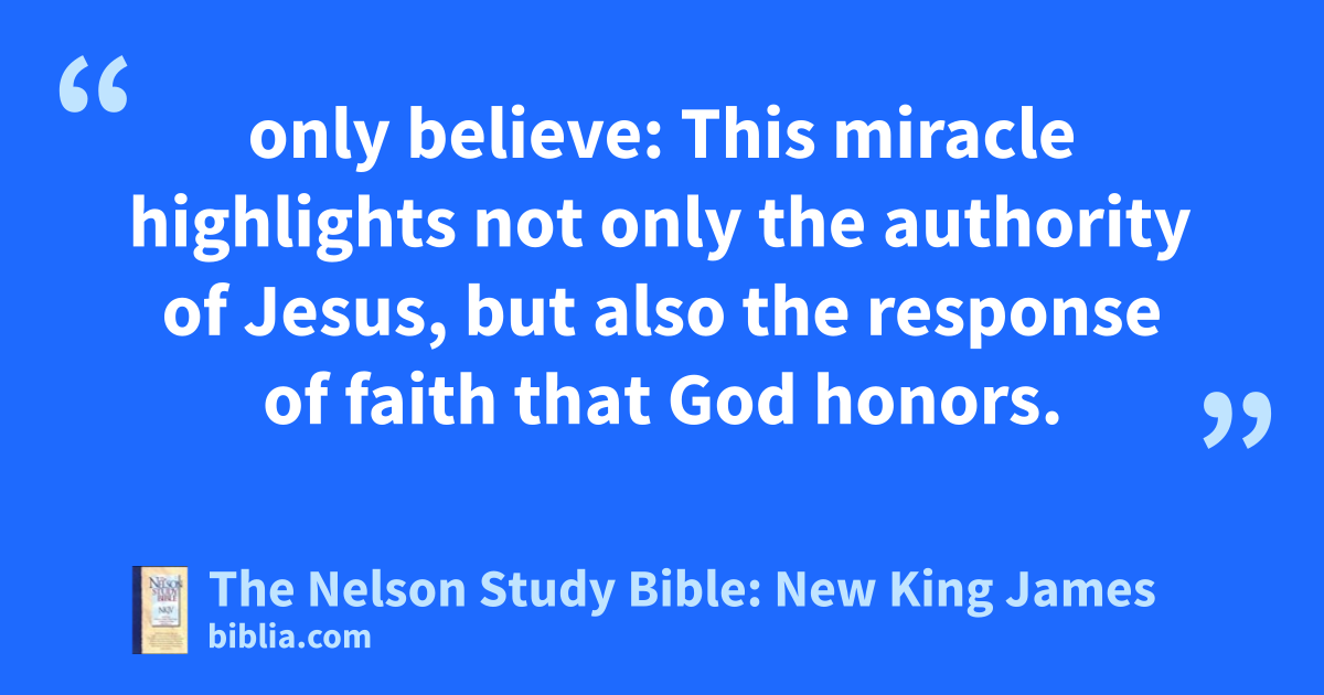 only believe: This miracle highlights not only the authority of Jesus, but also the response of faith that God honors.
