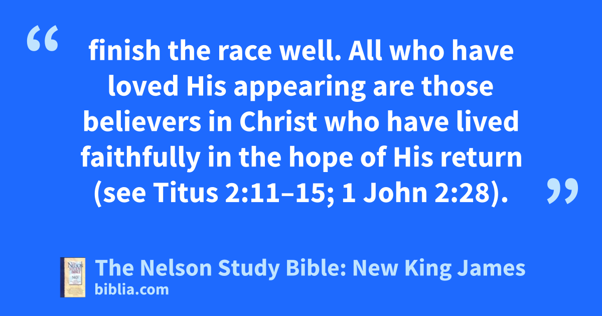 finish the race well. All who have loved His appearing are those believers in Christ who have lived faithfully in the hope of His return (see Titus 2:11–15; 1 John 2:28).