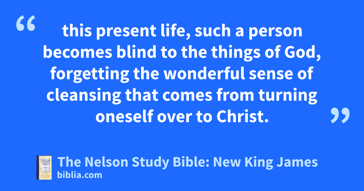 this present life, such a person becomes blind to the things of God, forgetting the wonderful sense of cleansing that comes from turning oneself over to Christ.