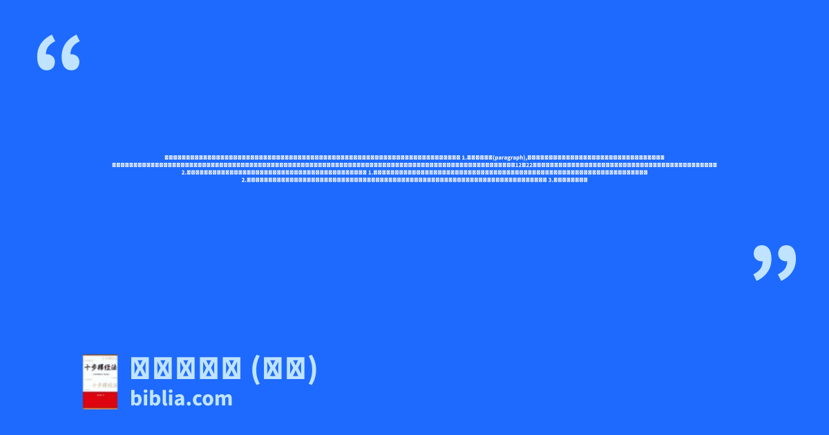 思與佈局。因爲這仍屬「觀察」的部分,故此只是初步、整體性的分析,不可能有詳盡的研究。有關結構較深入的探討,將在第十六章「字裏行間」中討論。 1.所謂「段落」(paragraph),是說明文結構中的一個基本單元,是一個中心思想的解釋、演繹和發揮。 「段落」可長可短,並沒有一定的準則,長的段落通常是由一連串的句子組合而成,構成一個中心,聖經中充滿了這類的例證。然而,句子若在思想上是完整獨立地存在,亦可以自成一段。例如帖撒羅尼迦前書五章12至22節,表面看來似乎是一個大段落,但其實卻由許多單獨句子所組成,是許多小段落合成的大段落。 2.特別注意經文中重要的連接詞,它們的作用是將一段或一組的經文與另外一組的經文連在一起。 1.細心閱讀經文,特別注意本書第七章中所提及有關辨認結構的項目,諸如:連接詞、上文下理、映襯、比對、遞進的觀念、高潮點、文法結構等。 2.在寫出經文初步的結構大綱時,必須從大處著眼,無須注意太多的細節。就如看地圖一般,先看主要的公路與景點,認清方向,暫時不用牽涉橫街窄巷的分析。 3.好的結構大綱必定