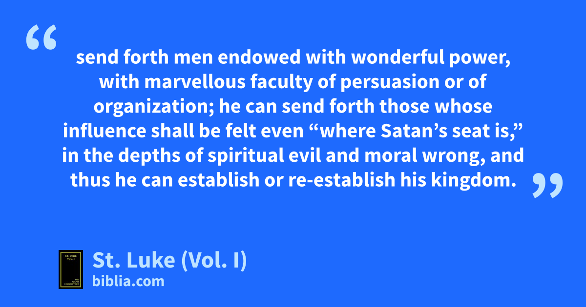 send forth men endowed with wonderful power, with marvellous faculty of persuasion or of organization; he can send forth those whose influence shall be felt even “where Satan’s seat is,” in the depths of spiritual evil and moral wrong, and thus he can establish or re-establish his kingdom.