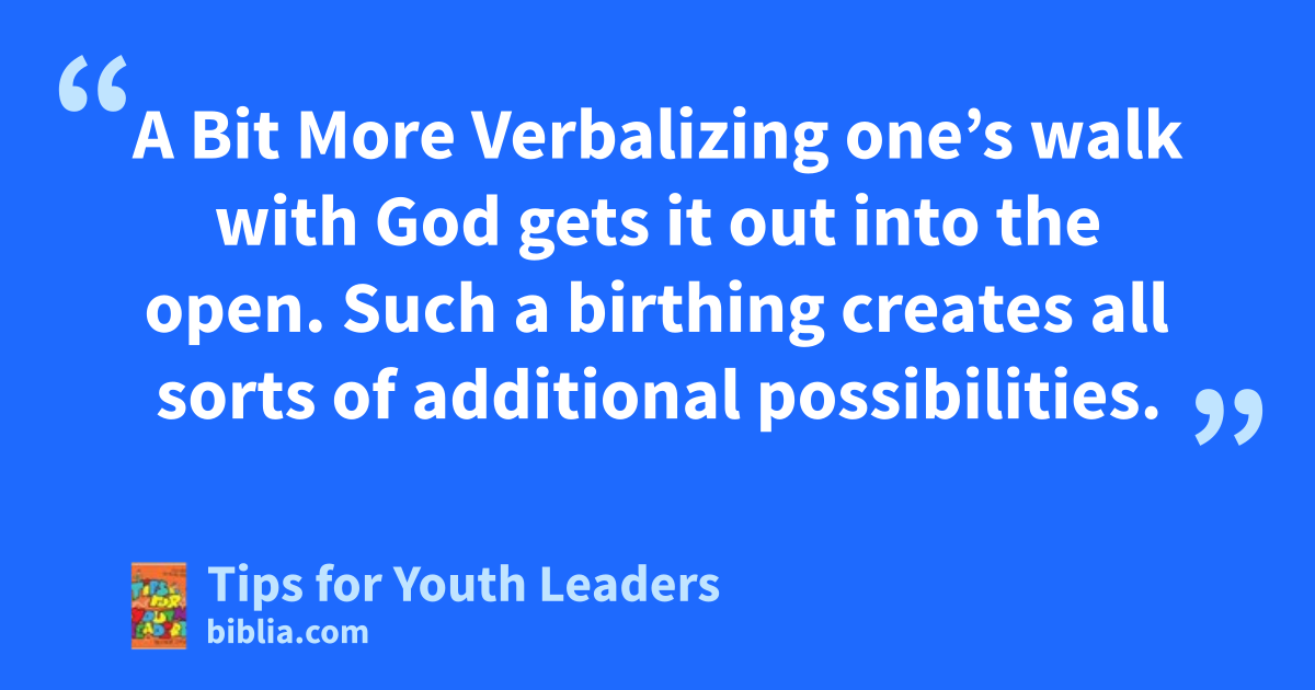 A Bit More Verbalizing one’s walk with God gets it out into the open. Such a birthing creates all sorts of additional possibilities.