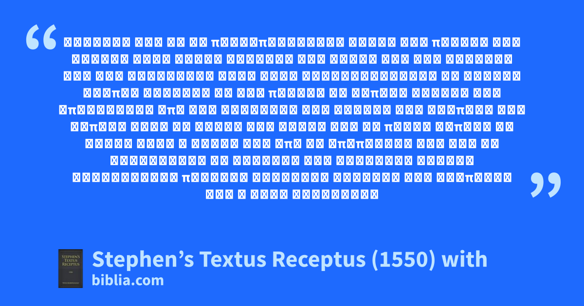 About Stephen’s Textus Receptus (1550) with MorphologyThe Stephens 1550 Textus Receptus edition, with complete parsing information for all Greek words, as printed in the George Ricker Berry Interlinear Greek NT volume. Morphological analysis provided by Dr. Maurice A. Robinson. The Textus Receptus 1550 Greek text is best known as the basis for the King James Version or Authorized Version completed in the year 1611. This is a useful text for comparison for those with proficiency in Greek. |