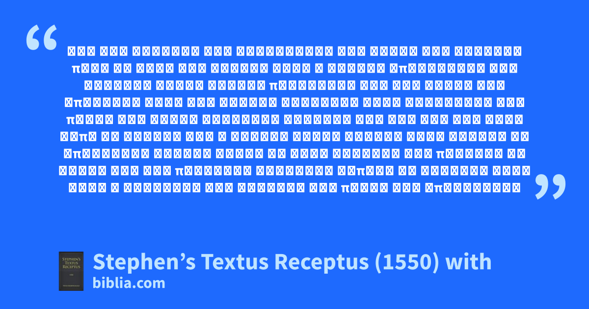 About Stephen’s Textus Receptus (1550) with MorphologyThe Stephens 1550 Textus Receptus edition, with complete parsing information for all Greek words, as printed in the George Ricker Berry Interlinear Greek NT volume. Morphological analysis provided by Dr. Maurice A. Robinson. The Textus Receptus 1550 Greek text is best known as the basis for the King James Version or Authorized Version completed in the year 1611. This is a useful text for comparison for those with proficiency in Greek. |