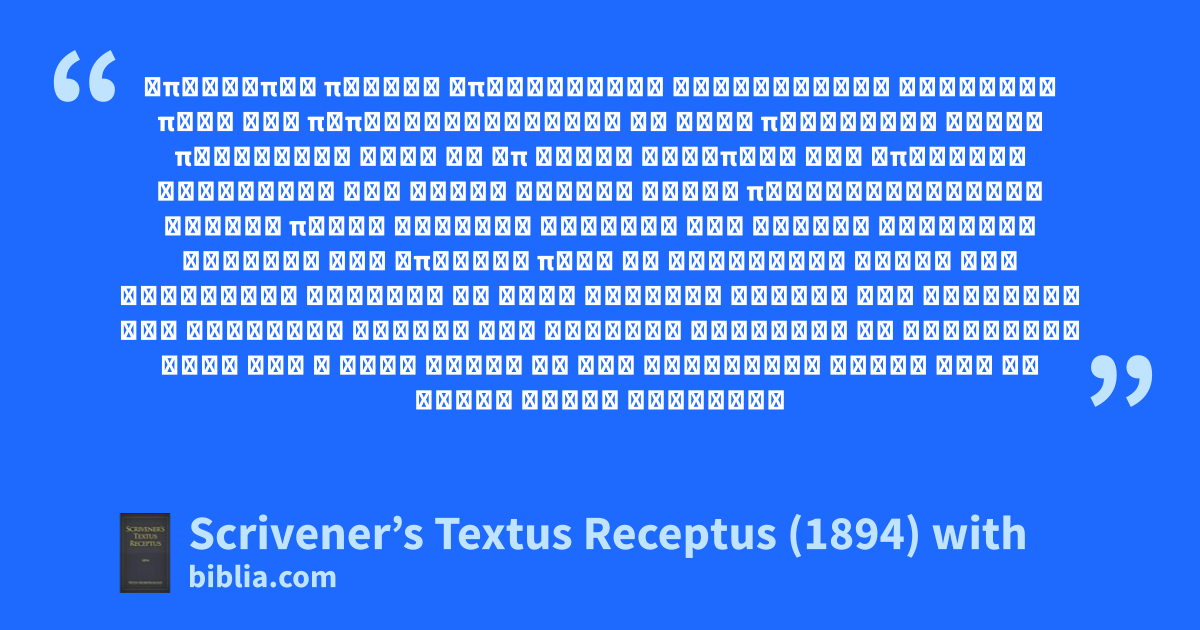 The Scrivener 1894 Textus Receptus edition, with complete parsing information for all Greek words. Morphological analysis provided by Dr. Maurice A. Robinson. The Textus Receptus 1894 Greek text is the corresponding Greek text to the 1611 King James Version. The Scrivener text is a modified Beza 1598 Textus Receptus in which changes have been made to reflect the readings chosen by the KJV...