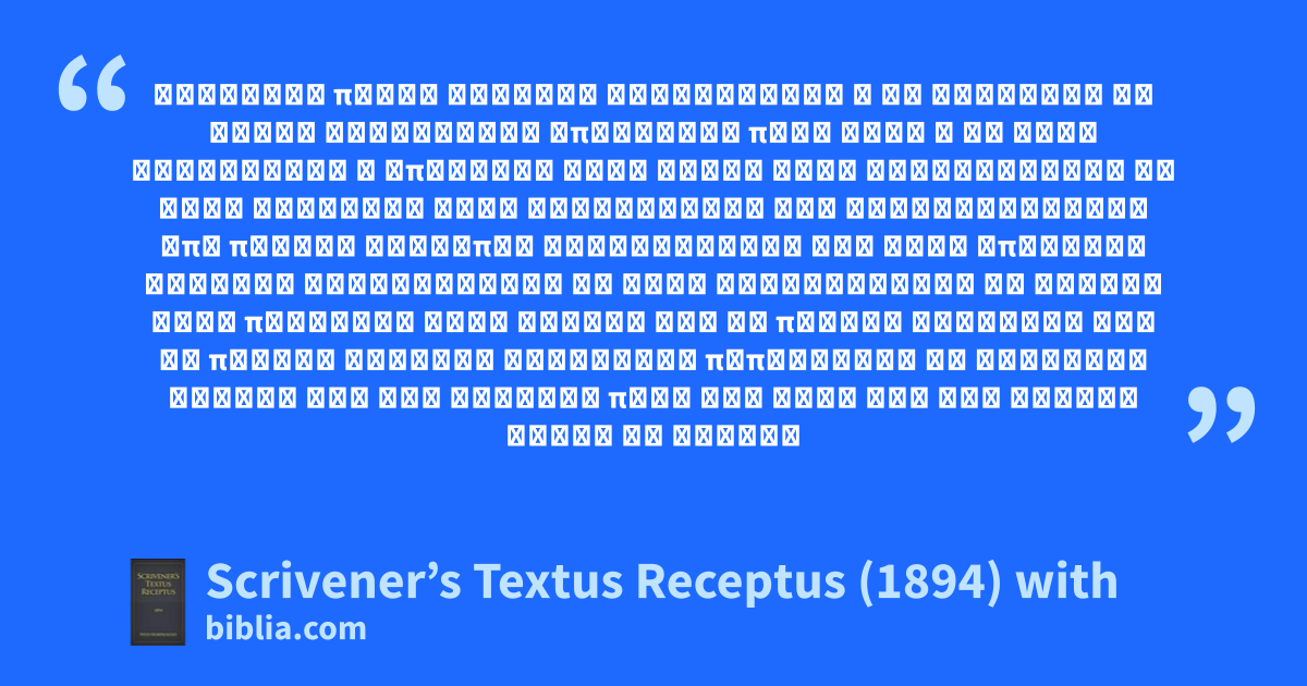 The Scrivener 1894 Textus Receptus edition, with complete parsing information for all Greek words. Morphological analysis provided by Dr. Maurice A. Robinson. The Textus Receptus 1894 Greek text is the corresponding Greek text to the 1611 King James Version. The Scrivener text is a modified Beza 1598 Textus Receptus in which changes have been made to reflect the readings chosen by the KJV...
