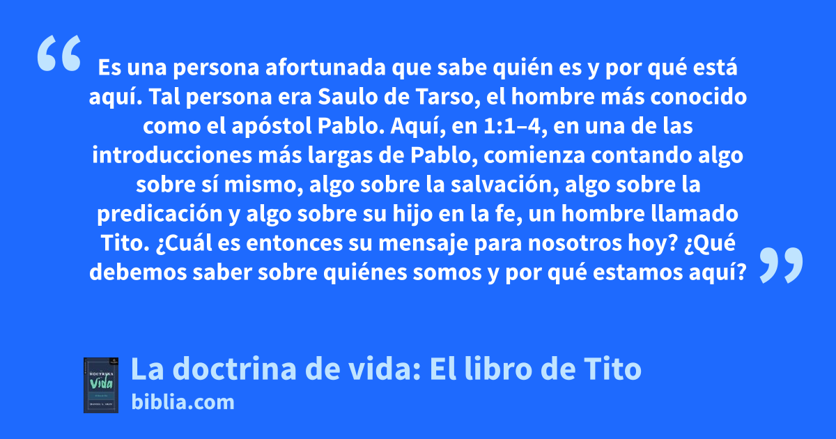 Es una persona afortunada que sabe quién es y por qué está aquí. Tal persona era Saulo de Tarso, el hombre más conocido como el apóstol Pablo. Aquí, en 1:1–4, en una de las introducciones más largas de Pablo, comienza contando algo sobre sí mismo, algo sobre la salvación, algo sobre la predicación y algo sobre su hijo en la fe, un hombre llamado Tito. ¿Cuál es entonces su mensaje para nosotros hoy? ¿Qué debemos saber sobre quiénes somos y por qué estamos aquí?