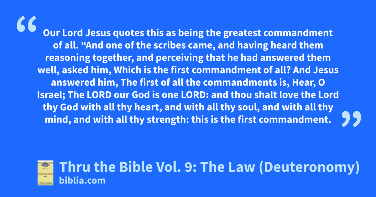 Our Lord Jesus quotes this as being the greatest commandment of all. “And one of the scribes came, and having heard them reasoning together, and perceiving that he had answered them well, asked him, Which is the first commandment of all? And Jesus answered him, The first of all the commandments is, Hear, O Israel; The LORD our God is one LORD: and thou shalt love the Lord thy God with all thy heart, and with all thy soul, and with all thy mind, and with all thy strength: this is the first commandment.