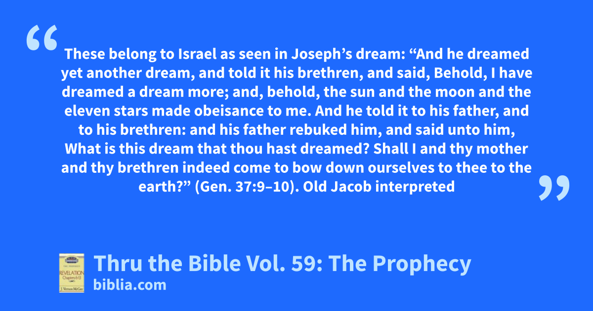 These belong to Israel as seen in Joseph’s dream: “And he dreamed yet another dream, and told it his brethren, and said, Behold, I have dreamed a dream more; and, behold, the sun and the moon and the eleven stars made obeisance to me. And he told it to his father, and to his brethren: and his father rebuked him, and said unto him, What is this dream that thou hast dreamed? Shall I and thy mother and thy brethren indeed come to bow down ourselves to thee to the earth?” (Gen. 37:9–10). Old Jacob interpreted
