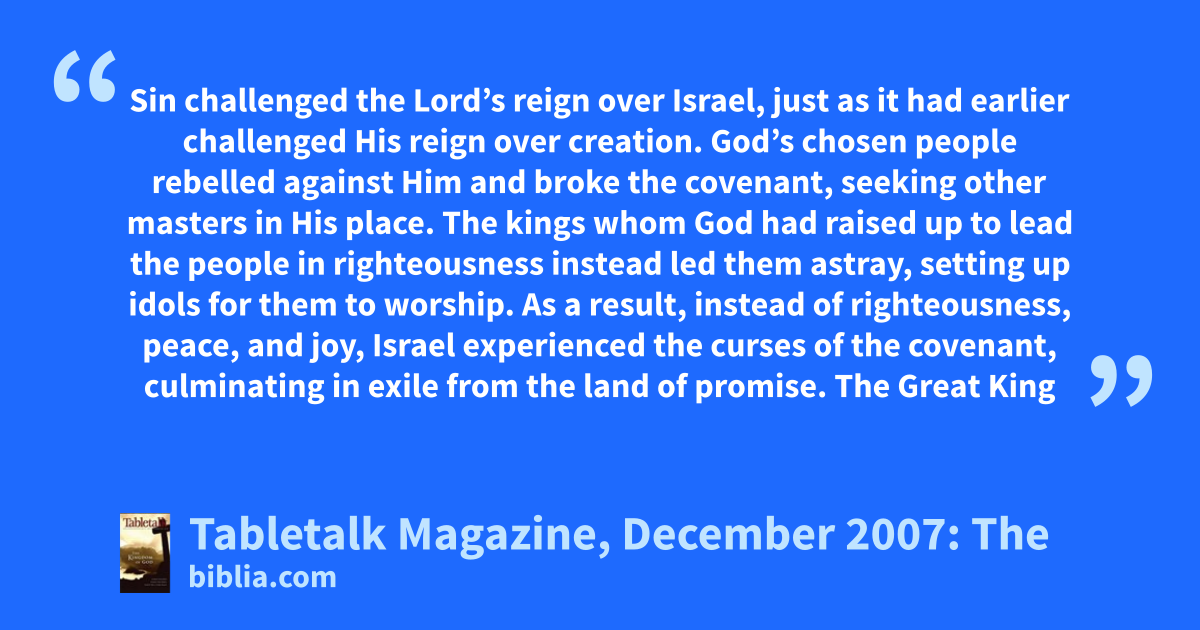 Possibly no other theme has generated as much debate as the kingdom of God. What is it? When will it arrive? Has it already? In what way? Who are its recipients? And the list goes on. This issue of Tabletalk, however, will not be entertaining such question in any great detail, for it is our desire to share with our readers some of the sweeping themes found in Scripture regarding God’s kingdom —...