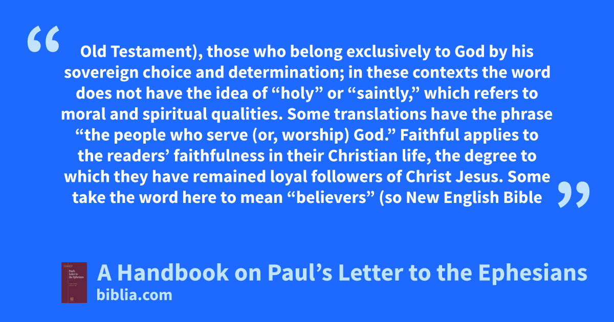 Old Testament), those who belong exclusively to God by his sovereign choice and determination; in these contexts the word does not have the idea of “holy” or “saintly,” which refers to moral and spiritual qualities. Some translations have the phrase “the people who serve (or, worship) God.” Faithful applies to the readers’ faithfulness in their Christian life, the degree to which they have remained loyal followers of Christ Jesus. Some take the word here to mean “believers” (so New English Bible