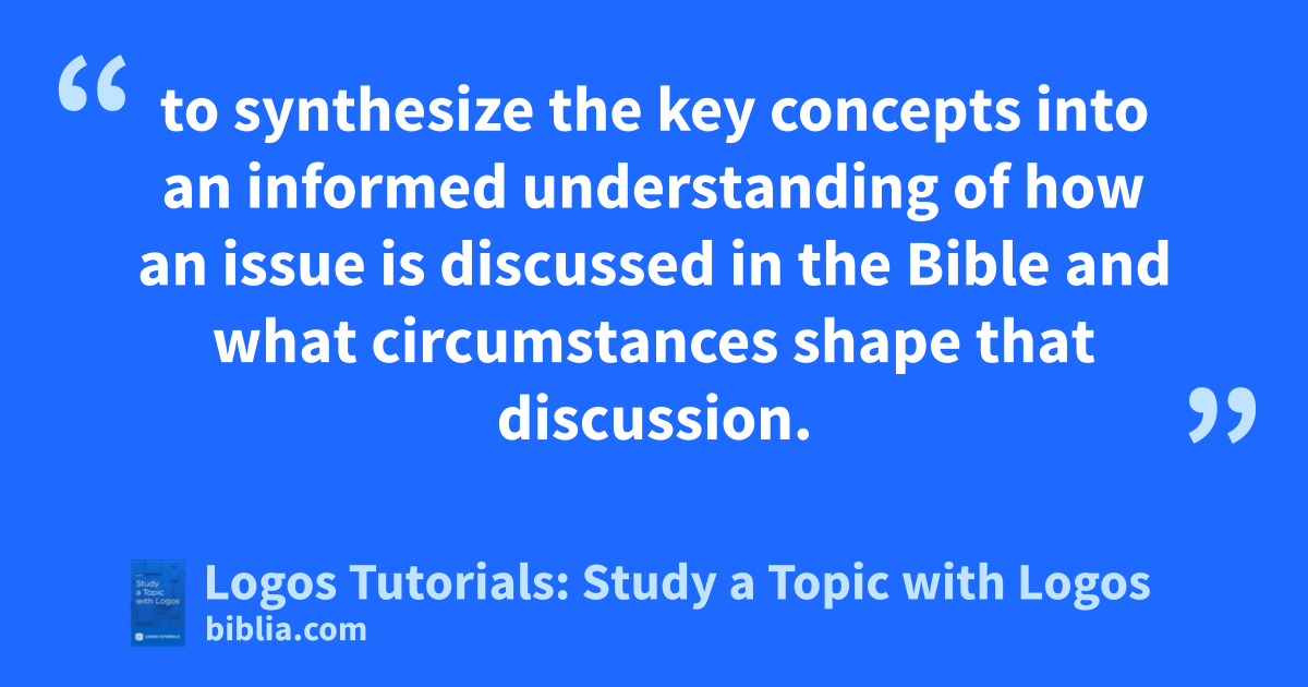 to synthesize the key concepts into an informed understanding of how an issue is discussed in the Bible and what circumstances shape that discussion.
