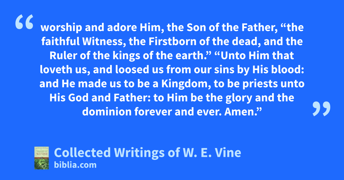 worship and adore Him, the Son of the Father, “the faithful Witness, the Firstborn of the dead, and the Ruler of the kings of the earth.” “Unto Him that loveth us, and loosed us from our sins by His blood: and He made us to be a Kingdom, to be priests unto His God and Father: to Him be the glory and the dominion forever and ever. Amen.”