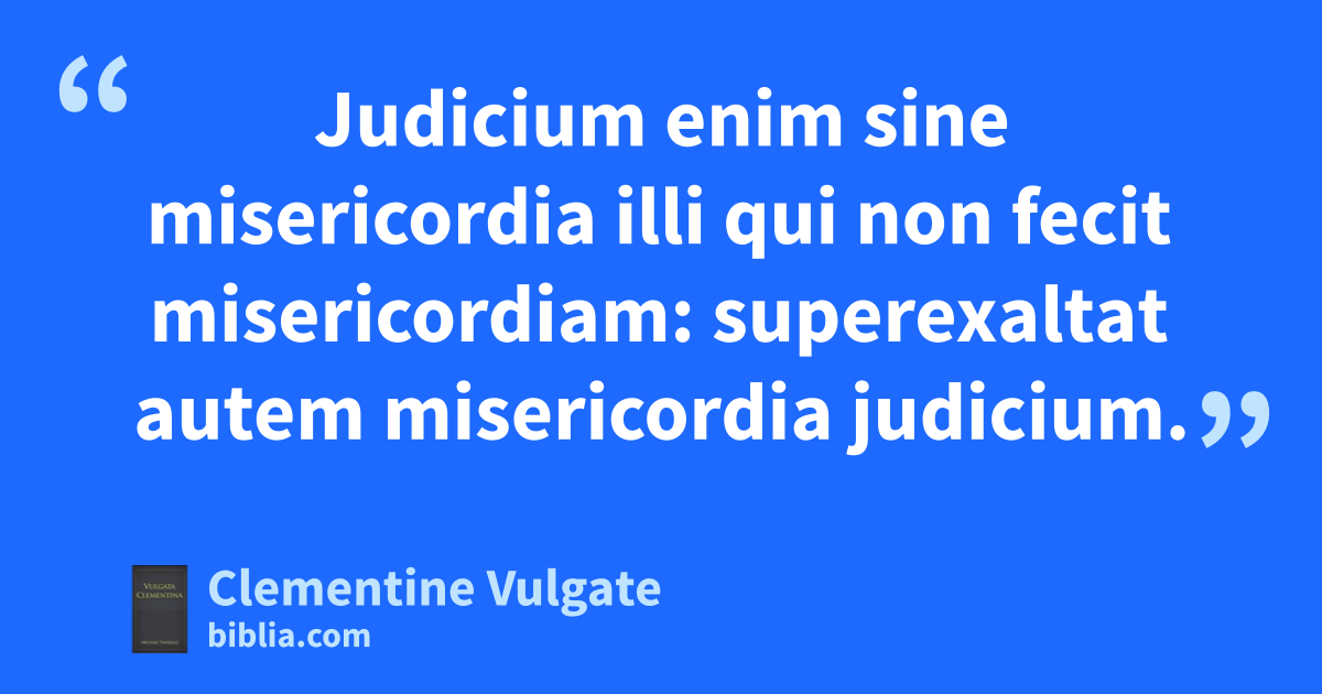 2 1 Fratres mei, nolite in personarum acceptione habere fidem Domini nostri Jesu Christi gloriæ. 2 Etenim si introierit in conventum vestrum vir aureum annulum habens in veste candida, introierit autem et pauper in sordido habitu, 3 et intendatis in eum qui indutus est veste præclara, et dixeritis ei: Tu sede hic bene: pauperi autem dicatis: Tu sta illic; aut sede sub scabello pedum meorum: 4 nonne judicatis apud vosmetipsos, et facti estis judices cogitationum iniquarum? 5 Audite, fratres mei dilectissimi: nonne Deus elegit pauperes in hoc mundo, divites in fide, et hæredes regni, quod repromisit Deus diligentibus se? 6 vos autem exhonorastis pauperem. Nonne divites per potentiam opprimunt vos, et ipsi trahunt vos ad judicia? 7 nonne ipsi blasphemant bonum nomen, quod invocatum est super vos? 8 Si tamen legem perficitis regalem secundum Scripturas: Diliges proximum tuum sicut teipsum: bene facitis: 9 si autem personas accipitis, peccatum operamini, redarguti a lege quasi transgressores. 10 Quicumque autem totam legem servaverit, offendat autem in uno, factus est omnium reus. 11 Qui enim dixit: Non mœchaberis, dixit et: Non occides. Quod si non mœchaberis, occides autem, factus es transgressor legis. 12 Sic loquimini, et sic facite sicut per legem libertatis incipientes judicari. 13 Judicium enim sine misericordia illi qui non fecit misericordiam: superexaltat autem misericordia judicium.