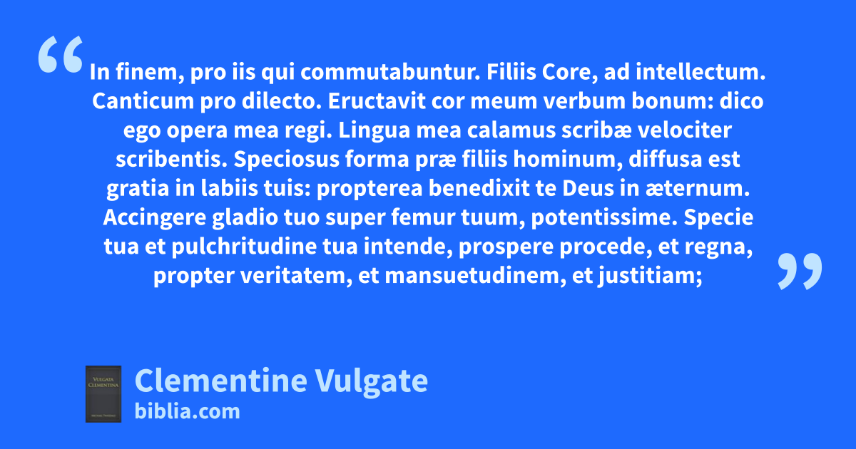 44 1 In finem, pro iis qui commutabuntur. Filiis Core, ad intellectum. Canticum pro dilecto.