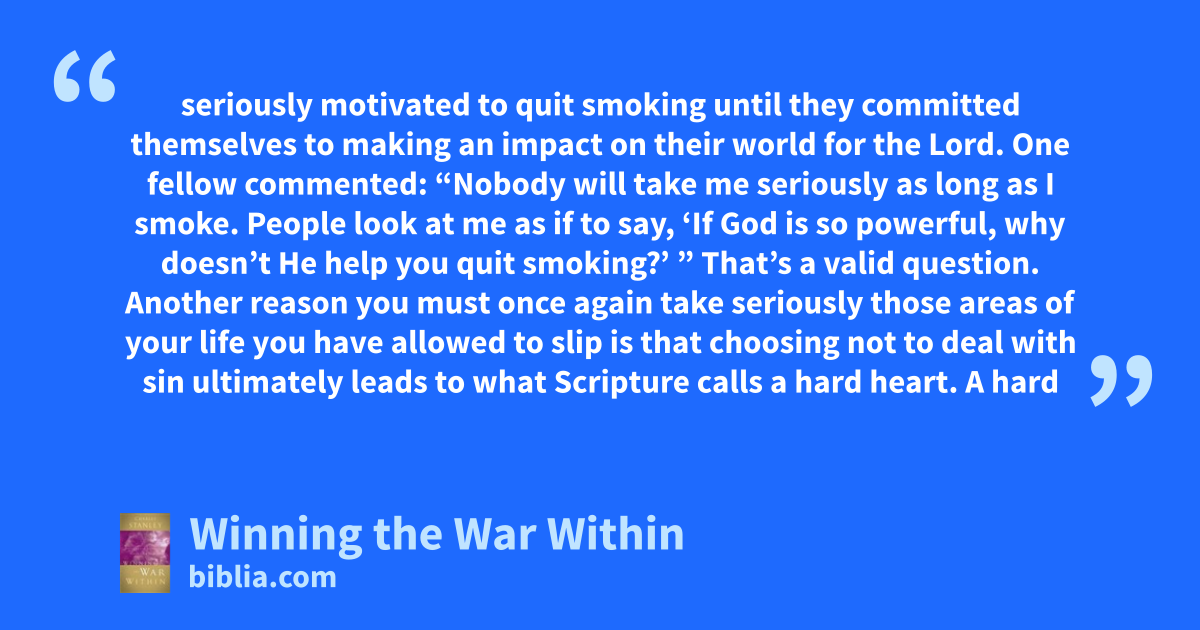 A few moments of illicit pleasure, a few dollars of illegal gain—what can it hurt? The aftermath of our pleasures and gains can wreak spiritual havoc when those indictments are bought at the cost of wrongdoing. In Winning the War Within, Dr. Stanley examines temptation from a biblical perspective and tracks its course from desire to sin to death. He clarifies the distinction between a test or a...