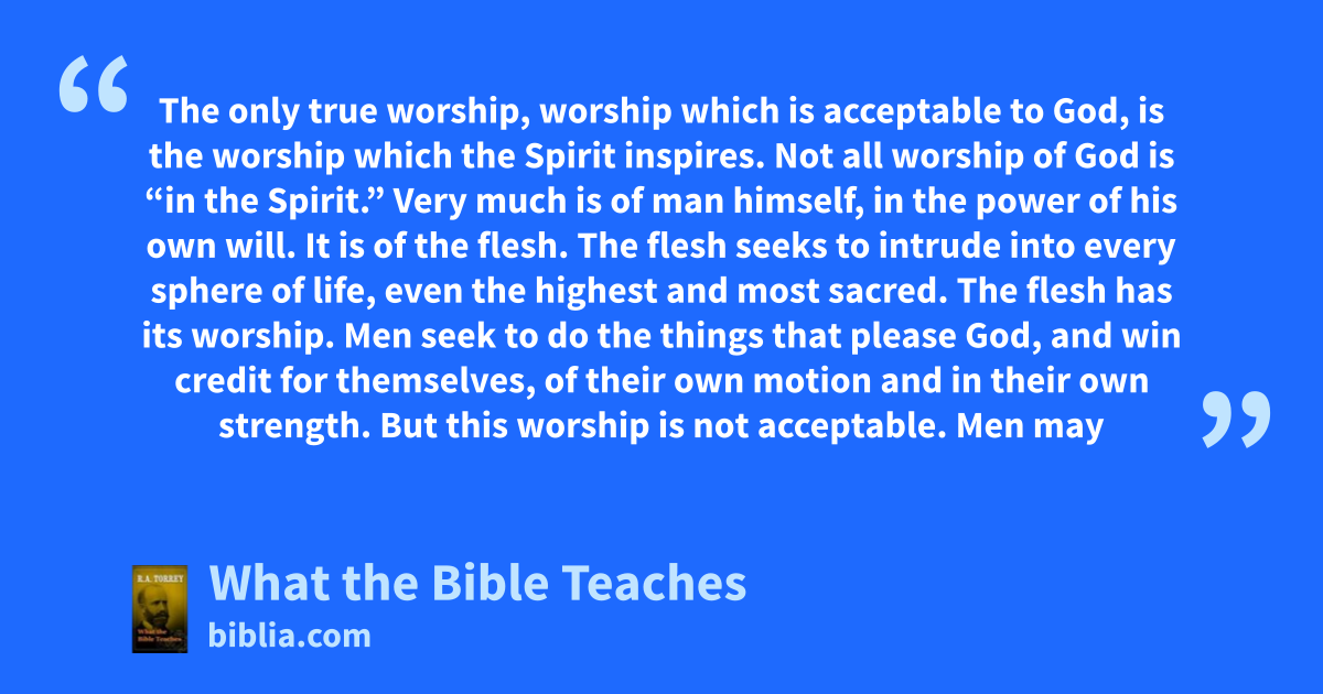 The only true worship, worship which is acceptable to God, is the worship which the Spirit inspires. Not all worship of God is “in the Spirit.” Very much is of man himself, in the power of his own will. It is of the flesh. The flesh seeks to intrude into every sphere of life, even the highest and most sacred. The flesh has its worship. Men seek to do the things that please God, and win credit for themselves, of their own motion and in their own strength. But this worship is not acceptable. Men may