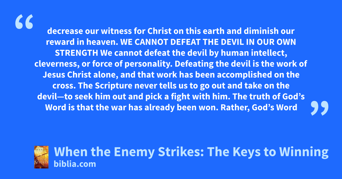 At some point or another every Christian will experience a satanic attack—a willful, determined assault by the Devil for the purpose of harming our spirit, soul, or body. God wants Christians to be under His control, but the Enemy will do his best to destroy everything good in our lives. So the question is not how to avoid satanic attacks, but how to overcome them. Satan is not omnipotent, but...